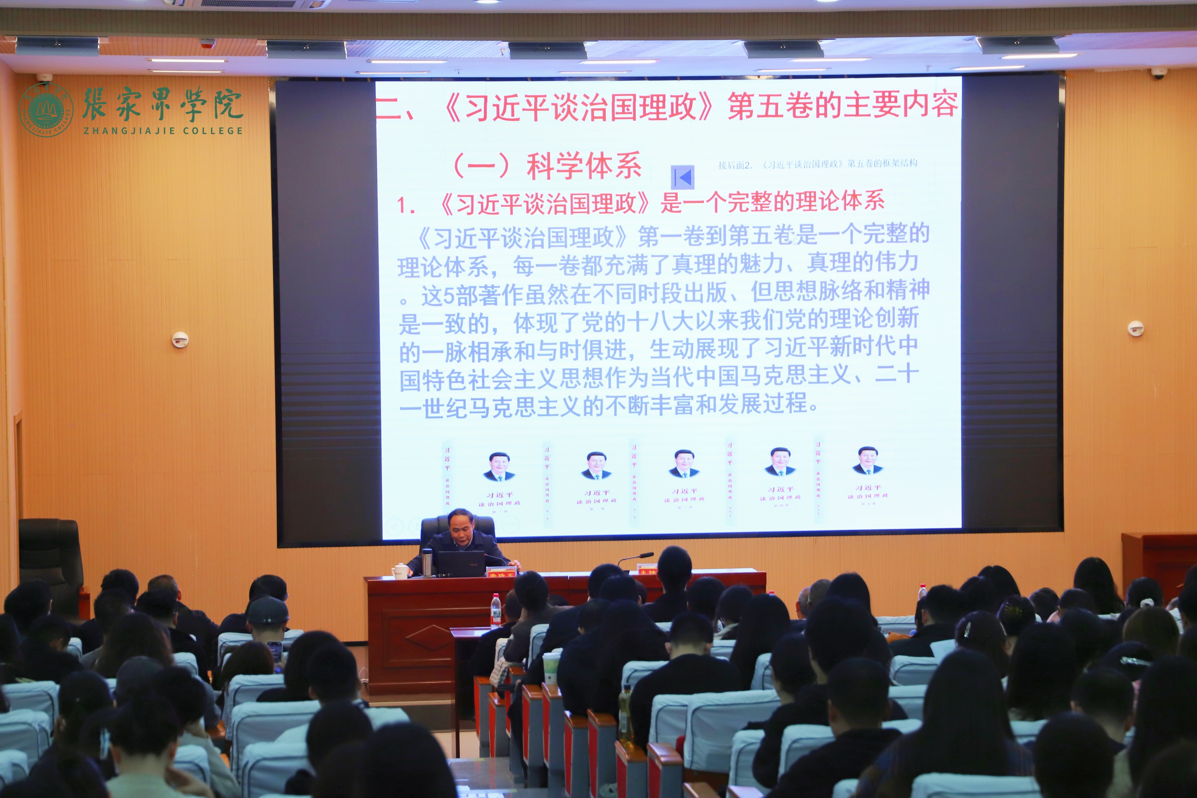 为深化对新时代党的创新理论的理解与认识,10月29日,我校于诸子厅开展《习近平谈治国理政》第五卷导读的学习,特邀中共湖南省委党校(湖南行政学院)公共管理教研部原任主任,国家二级教授、享受国务院政府特殊津贴专家唐琦玉教授进行宣讲,全体党员参与学习。讲座由校党委书记王宾吾主持。
